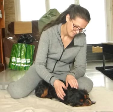 j'applique un protocole de massage axé sur le bien-être et la détente de votre chien, en m'adaptant à ses besoins du moment.