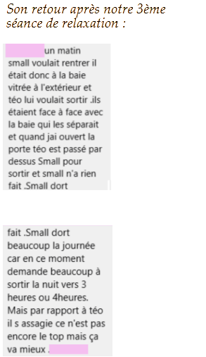 une meilleure confiance en lui et en ce qui l'entoure, l'ambiance à la maison s'apaise, les sorties en extérieur sont plus sereines,