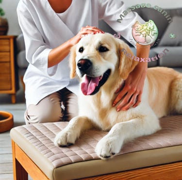 j'applique un protocole de massage axé sur le bien-être et la détente de votre chien, en m'adaptant à ses besoins du moment.